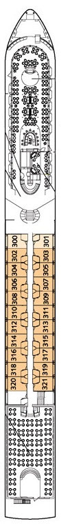 | Кат. 9 | Каюта двухместная Deluxe с открывающимся окном №№ 300,301 |