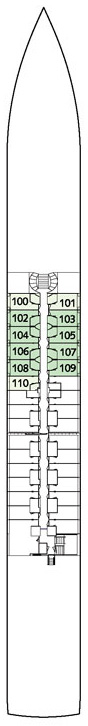 | Кат. 1 | Каюта двухместная на нижней палубе, нос, №№100,101, корма,№110 |