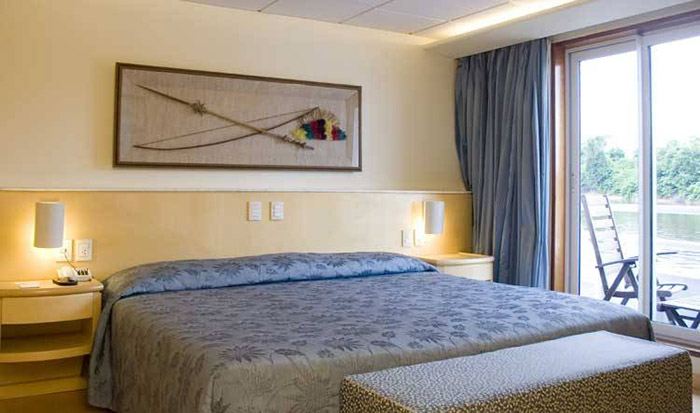 Просторные каюты с балконом расположены на 3х палубах: ACARA (Верхняя), TAMBAQUI (Средняя), MANDI (Главная).