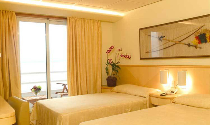 Спальня с 2мя кроватями (TWIN) или с двухспальной кроватью (DBL — отмечены на плане теплохода звездочкой);