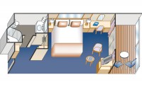 Расположены на палубах: 8, 9, 10, 11, 12, 14. Площадь каюты: 22 - 27 кв.м. В каюте: две кровати (объединяются в одну кровать queen-size), ванная комната с душем и ванной.
