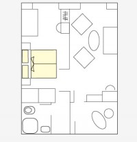 Просторные каюты площадью 40 кв.м. с индивидуальным кондиционером из 2х комнат;
