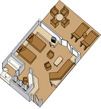 Две одноместные кровати или одна двуспальная, ванная комната, душ, большая комната отдыха, гардеробная, балкон, диван на двоих человек, мини-бар, панорамные окна.(Категории SA, SB, площадь 52 кв.м., с балконом).