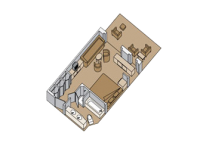 Две одноместные кровати или одна двуспальная, ванная комната, огромная ванна-джакузи, душ, дополнительная душевая кабинка, комната отдыха, гардеробная, балкон, диван на двоих человек, панорамные окна. (Категория SS, SY, SZ, площадь 35 кв.м. с балконом).