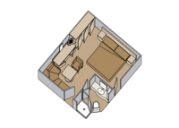 Две одноместные кровати или одна двуспальная, душевая кабина. (Категория I, J, K, L, M, MM, N, NN, площадь от 14 до 22 кв.м.).