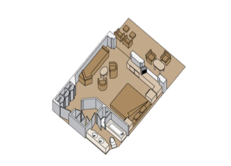 Две одноместные кровати или одна двуспальная, ванная комната с раковиной и туалетным столиком, большая ванна-джакузи, душ, дополнительная душевая кабинка, комната отдыха, гардеробная, балкон, диван на двоих человек, DVD плеер, панорамные окна. (Категории SA, SB, SC, площадь от 47 до 66 кв.м., с балконом).