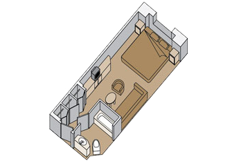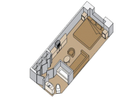 Две одноместные кровати или одна двуспальная, ванная комната с душем. Все каюты категории G имеют окно с ограниченным видом на океан. Категории GG, H и HH имеют полностью ограниченный вид из окна. (Категории C, D, DD, E, F, G, GG, H, HH, площадь 17 кв.м.).