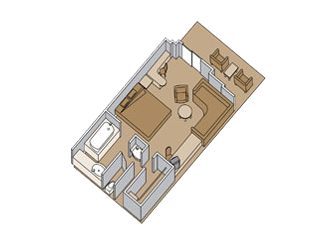 Спальная с большой кроватью, шкаф в прихожей, ванна-джакузи с видом на океан, душ, гостиная, столовая, балкон, холодильник, панорамные окна. (Категория SS, SY, площадь от 34 до 37 кв.м., с балконом).