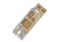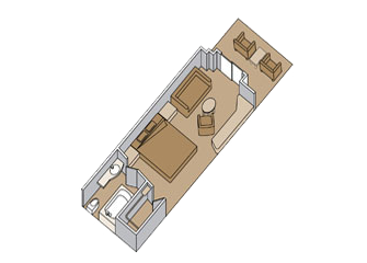 Две одноместные кровати или одна двуспальная, шкаф в прихожей, ванная с душем и джакузи, две раковины, балкон, холодильник, панорамные окна. (Категории A, AA, AB, BC, площадь от 21 до 25 кв.м., с балконом).