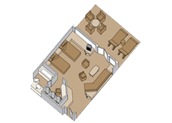 Две одноместные кровати или одна двуспальная, большая ванна-джакузи, душ, зона отдыха, гардеробная, балкон, диван, мини-бар, холодильник, панорамные окна. (Категория S, площадь 52 кв.м., с балконом).