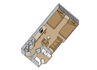 Категории I, IQ (с 23 февраля 2010 г. февраля каюты Спа), J, K, L, M, MM, N, NN, площадь от 13 до 21 кв.м. Две одноместные кровати или одна двуспальная, душевая кабина.