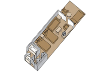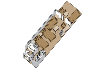 Две одноместные кровати или одна двуспальная, ванная комната, душ, комната отдыха, гардеробная, балкон, мини-бар, холодильник, панорамные окна. (Категория A, B, BB, BC, BQ (Спа-каюта), площадь 27 кв.м., с балконом). К Вашим услугам: