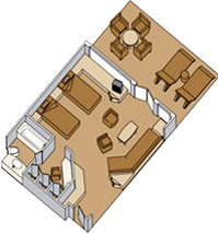 Две одноместные кровати или одна двуспальная, ванная комната, душ, большая комната отдыха, гардеробная, балкон, диван на двоих человек, мини-бар, панорамные окна.(Категории SA, SB, площадь 52 кв.м., с балконом).
