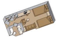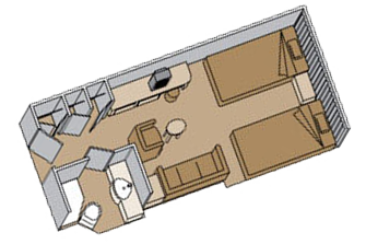 Все каюты категорий C, CQ D, DA, DD имеют окно с ограниченным видом на океан. Категория HH имеет полностью ограниченный вид из окна. В каютах категории E, EE, F, FF, G и H могут быть вместо окон иллюминаторы. (Категории C, D, DA, DD, E, EE, F, FF G, H, HH площадь 18 кв.м.).
