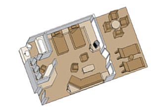 Две одноместные кровати или одна двуспальная, ванная комната, душ, большая комната отдыха, гардеробная, балкон, диван на двоих человек, мини-бар, панорамные окна.(Категории S, SA, SB, площадь 52 кв.м., с балконом).