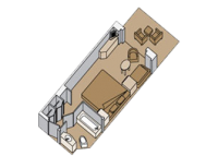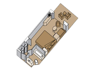 Две одноместные кровати или одна двуспальная, ванная комната с душем, комната отдыха, балкон, панорамные окна. (Категория V, VA, VB, VC, VD, VE, VF, VH, VQ, площадь от 20 до 33 кв.м.).