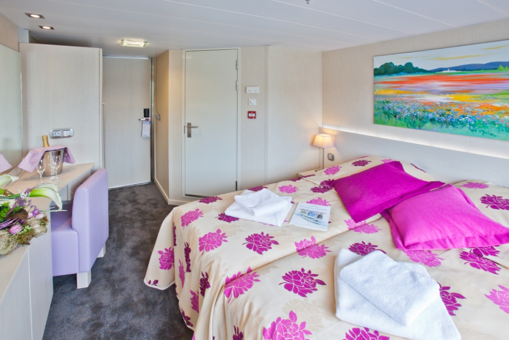 На Средней палубе расположена 21 каюта DELUXE: каюты с возможностью трансформации в DBL (с одной большой кроватью) или TWIN (с 2‑мя кроватями) и 2 каюты DBL (с одной большой кроватью).