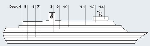 Lisboa - палуба 14 Biarritz - палуба 12 Monte-Carlo - палуба 11 Madrid - палуба 10 Vienna - палуба 9 Verona - палуба 8 Paris - палуба 7 London - палуба 6 Copenhagen - палуба 5 Amsterdam - палуба 4 |