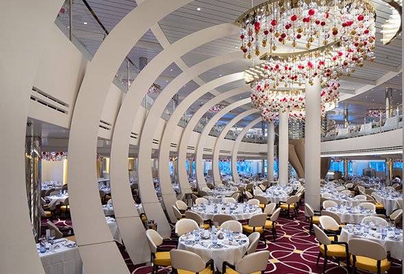 Основной ресторан на борту Nieuw Statendam занимает два этажа с панорамными окнами и завораживающим видом на море. Оригинальное дополнение - «винная башня» из стали и стекла с широким выбором вин!