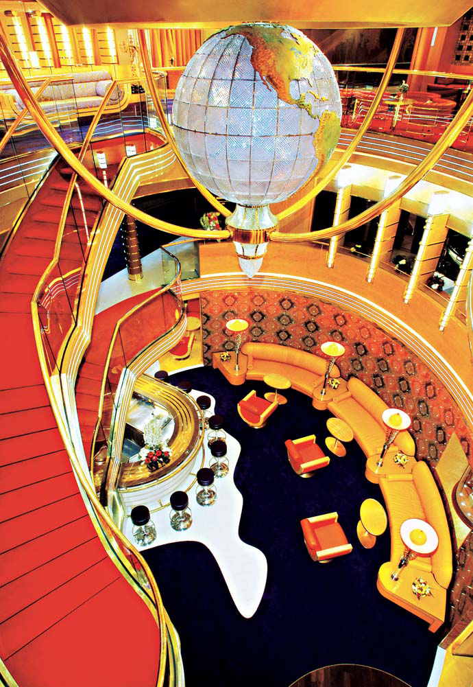 Символизируя 135 лет путешествий на лайнерах Holland America Line по всему миру, в центре Атриума лайнера Oosterdam подвешен огромный хрустальный глобус. Компания Holland America Line придумала свой незабываемый стиль, и он легко узнаваем: теплые тона, мрамор, латунь, широкое использование кристаллов, различные виды дерева, огромное количество свежих цветов на борту лайнера, бесценные произведения искусств, антиквариат, прогулочная палуба из тикового дерева и мягкие кресла.