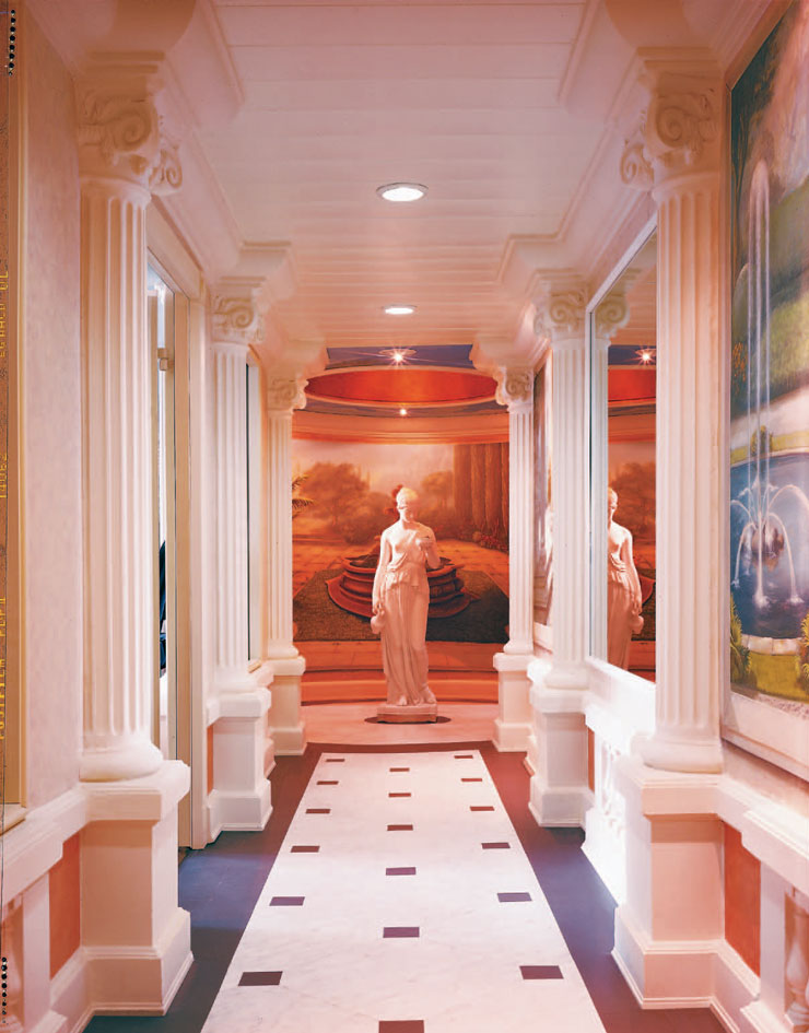 В центре трехэтажного Атриума располагается огромный Стеклянный цилиндр из оптиковолокна, который украшен морскими рыбами, черепахами и дельфинами. Еще одно настоящее произведение искусства — это абстрактная скульптура из мрамора норвежского скульптура Николаса Вайдерберга, коллекция картин художника-испрессиониста Нейла Пинкетта и выдающаяся коллекция римских амфор 50-150 г. до н.э. Лайнер Prinsendam или «Принцесса» действительно оправдывает свое имя.