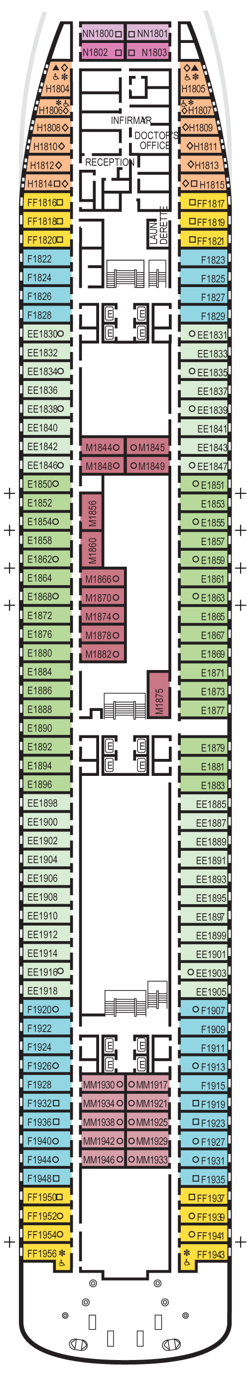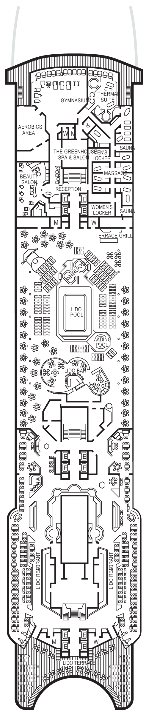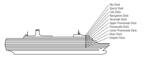 Dolphin Deck Main Deck Lower Promenade Deck Promenade Deck Upper Promenade Deck Verandah Deck Navigation Deck Lido Deck Sports Deck |