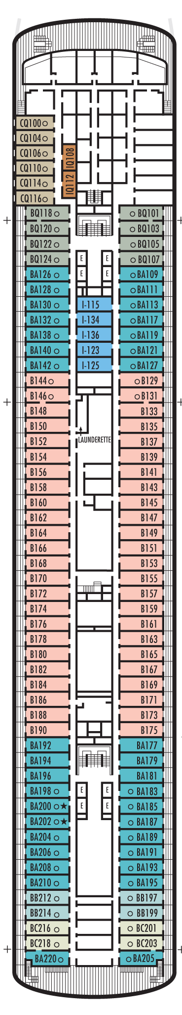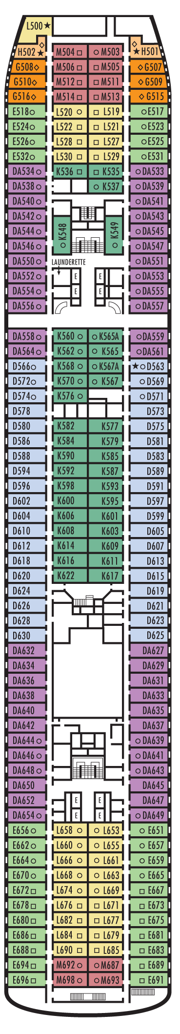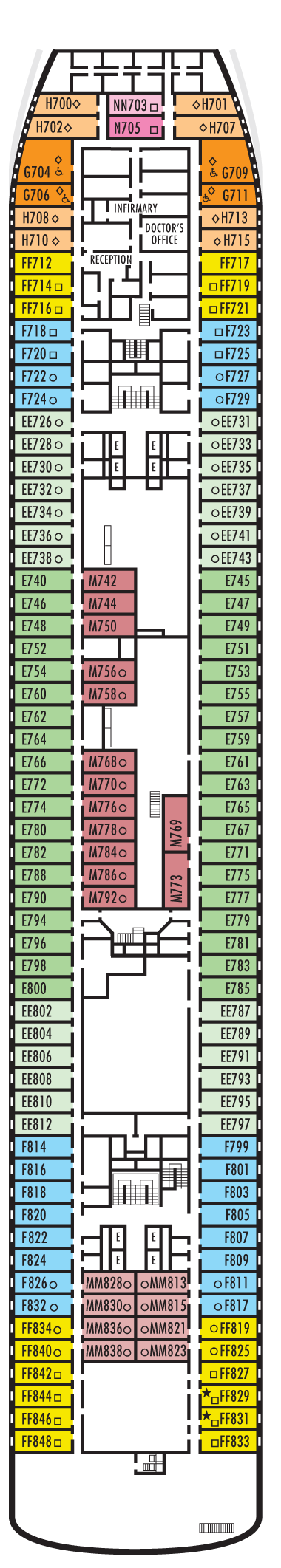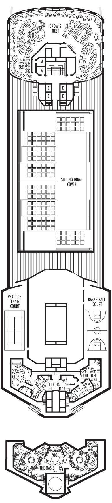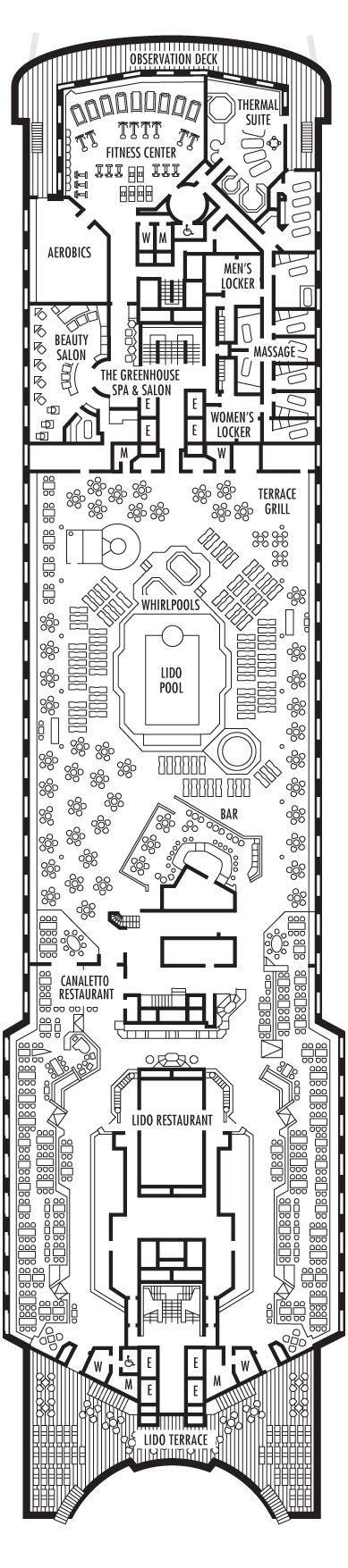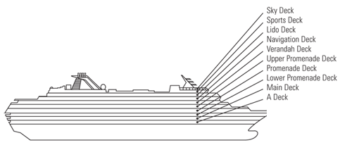 Sky Deck Sports Deck Lido Deck Navigation Deck Verandah Deck Upper Promenade Deck Promenade Deck Lower Promenade Deck Main Deck A Deck |
