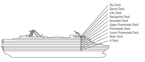 Sky Deck Main Deck Lower Promenade Navigation Deck Promenade Deck Upper Promenade Verandah Deck Lido Deck Sports Deck A Deck |