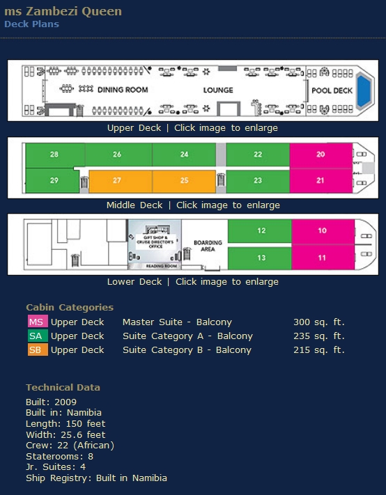 Новый роскошный круизный теплоход ZAMBEZI QUEEN был построен Круизной Компанией AMAWATERWAYS в 2009 году специально для сафари-круизов по реке Чобе.